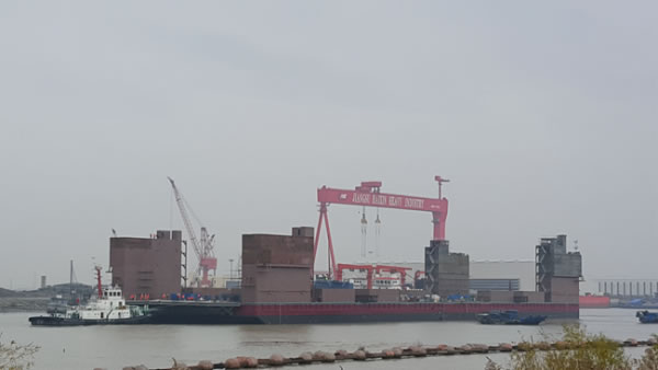 When the second firecrackers sounded, 14000 tons semi-submersible vessel realizedthe undock, After completion, the ship will be used for major logistics project of shipyards and port.