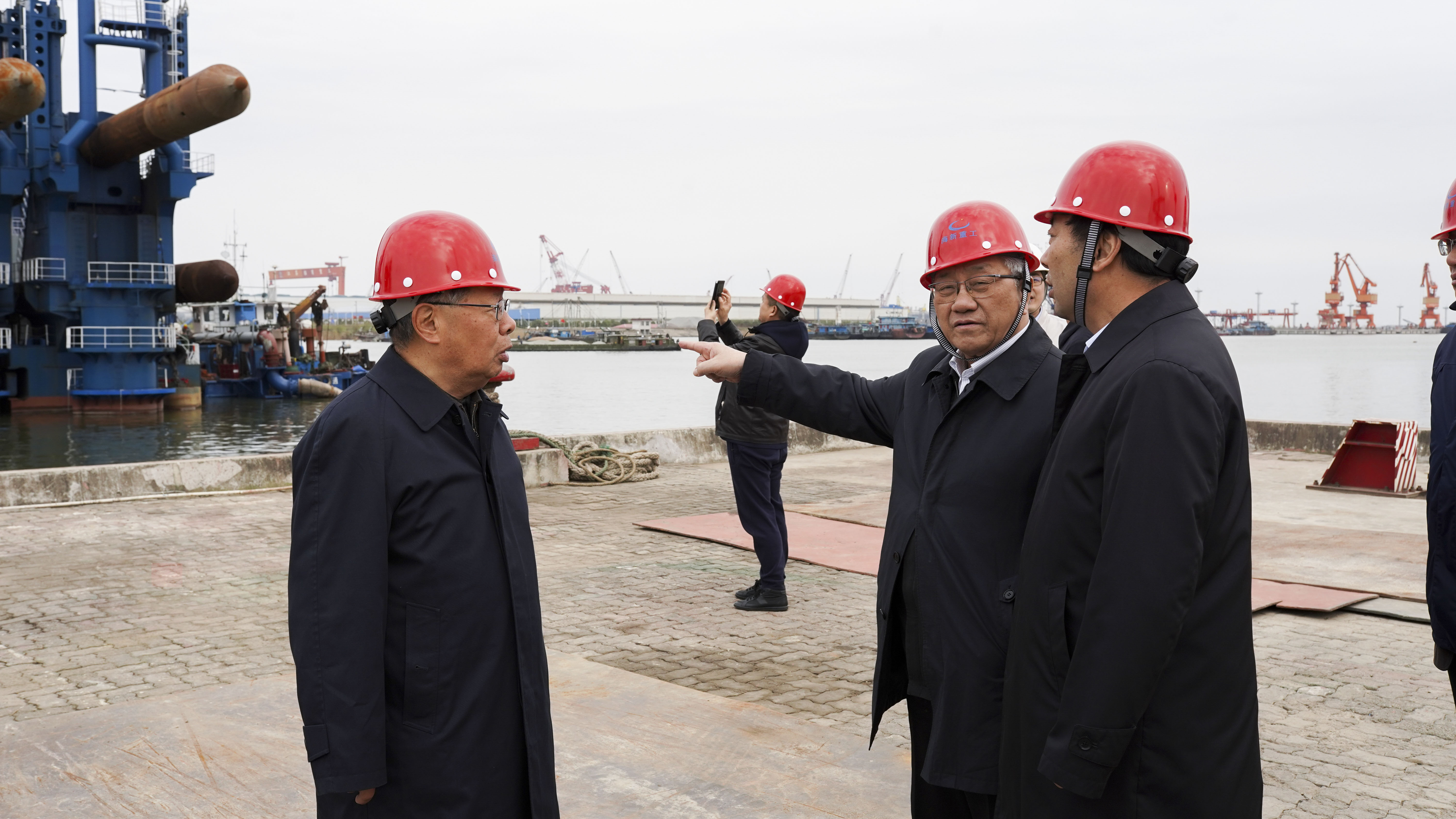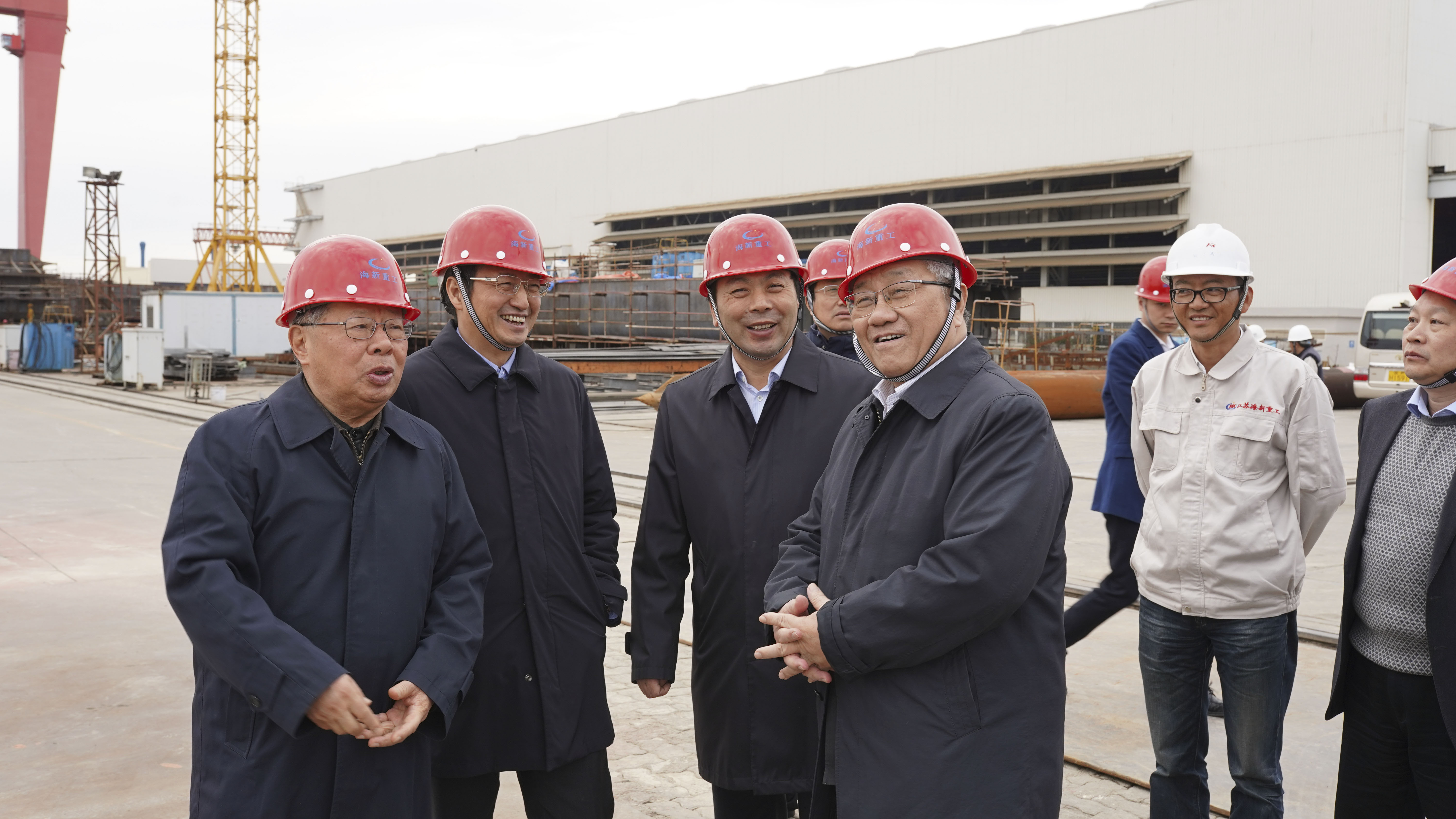 The Minister of Transport Huang Zhendong, Li Shenglin visiting the Haixin Shipyard