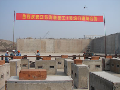 In the afternoon of October 8, 2011, a large flat-panel truck which carried a huge dock gate section slowly entered the dock. At the same time, two 100t crawler cranes lifted the section firmly, and placed on the pier prior layout stably. S...