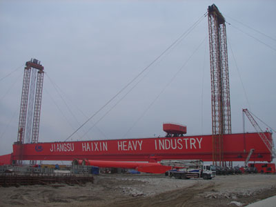 On December 20, 2011 at 9:30 am,. 900 tons gantry crane lifting ceremony was ceremoniously held in Jiangsu Haixin Shipping Heavy Industry Co., Ltd. The high standing of the lifting frame, with sixteen sets of cables in a brisk wind brush so...