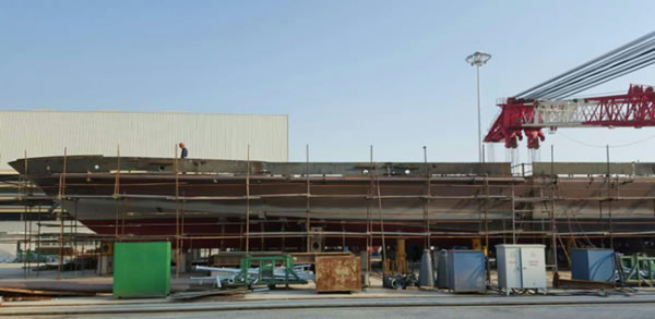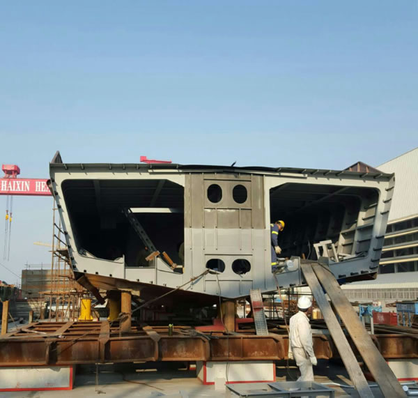 目前,先開工的HX023船的鋁質(zhì)上建已經(jīng)制作完畢,等待吊裝,后開工的HX022船的機(jī)電設(shè)備已逐步到廠。兩艘公務(wù)船的美麗線型,已在總裝平臺(tái)上展現(xiàn)雛形。