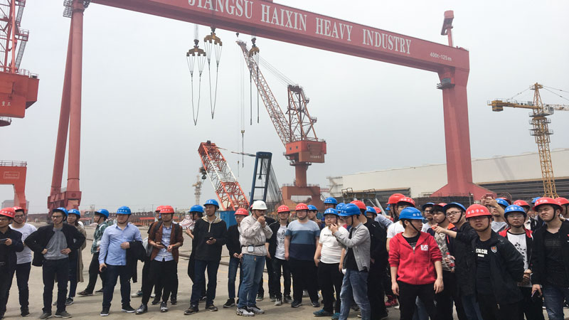 4月24日江蘇科技大學(xué)船海學(xué)院19屆學(xué)生66人在黃彪、殷齊麟老師的帶領(lǐng)下,參觀了我公司海新船廠和通海港碼頭工地。海新項(xiàng)目經(jīng)理殷飛飛帶領(lǐng)學(xué)生按船廠生產(chǎn)的工藝流程,參觀了整個(gè)船廠,并做了詳細(xì)的講解,同學(xué)們對(duì)船廠總布置有了直觀的了解。通海港項(xiàng)目經(jīng)理傅曉健在現(xiàn)場(chǎng)就高樁碼頭為學(xué)生做了生動(dòng)詳盡的介紹,學(xué)生踴躍提問,積極互動(dòng),是一次非常成功的崗前實(shí)踐。