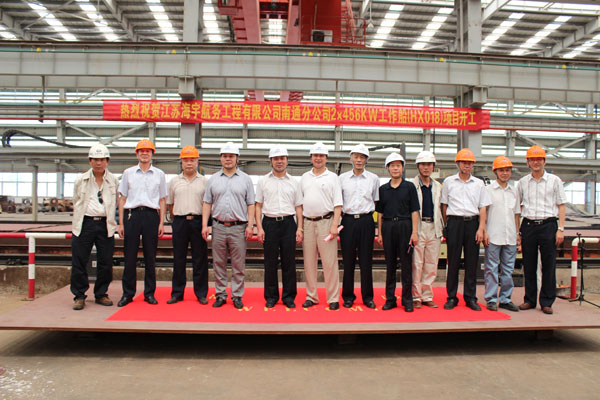 2013年7月8日上午,江蘇海新船務(wù)重工承建的江蘇海宇航務(wù)有限公司2ⅹ456kW工作船舉行開(kāi)工儀式。出席開(kāi)工儀式的有海新重工董事長(zhǎng)兼總經(jīng)理孟咸宏先生、海宏公司副董事長(zhǎng)陳華美先生、...