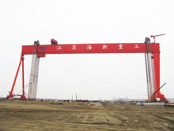 2011年12月20日上午9:30分,江蘇海新船務重工有限公司工地上鞭炮齊鳴。900噸龍門吊頂升儀式在這里隆重舉行。高高矗立的頂升架上,十六組鋼索在風中發(fā)出輕快的刷刷聲,仿佛氣勢磅礴...