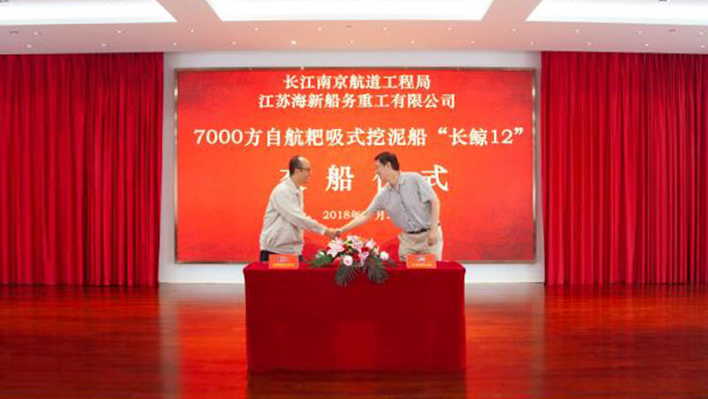2018年07月24日,江蘇海新船務(wù)重工有限公司為長江南京航道工程局建造的7000方自航耙吸式挖泥船長鯨12號圓滿交船。...