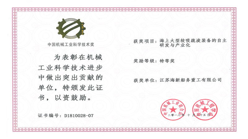 2018年10月25日,熱烈慶祝海新重工榮獲中國機(jī)械工業(yè)科學(xué)技術(shù)特等獎。...